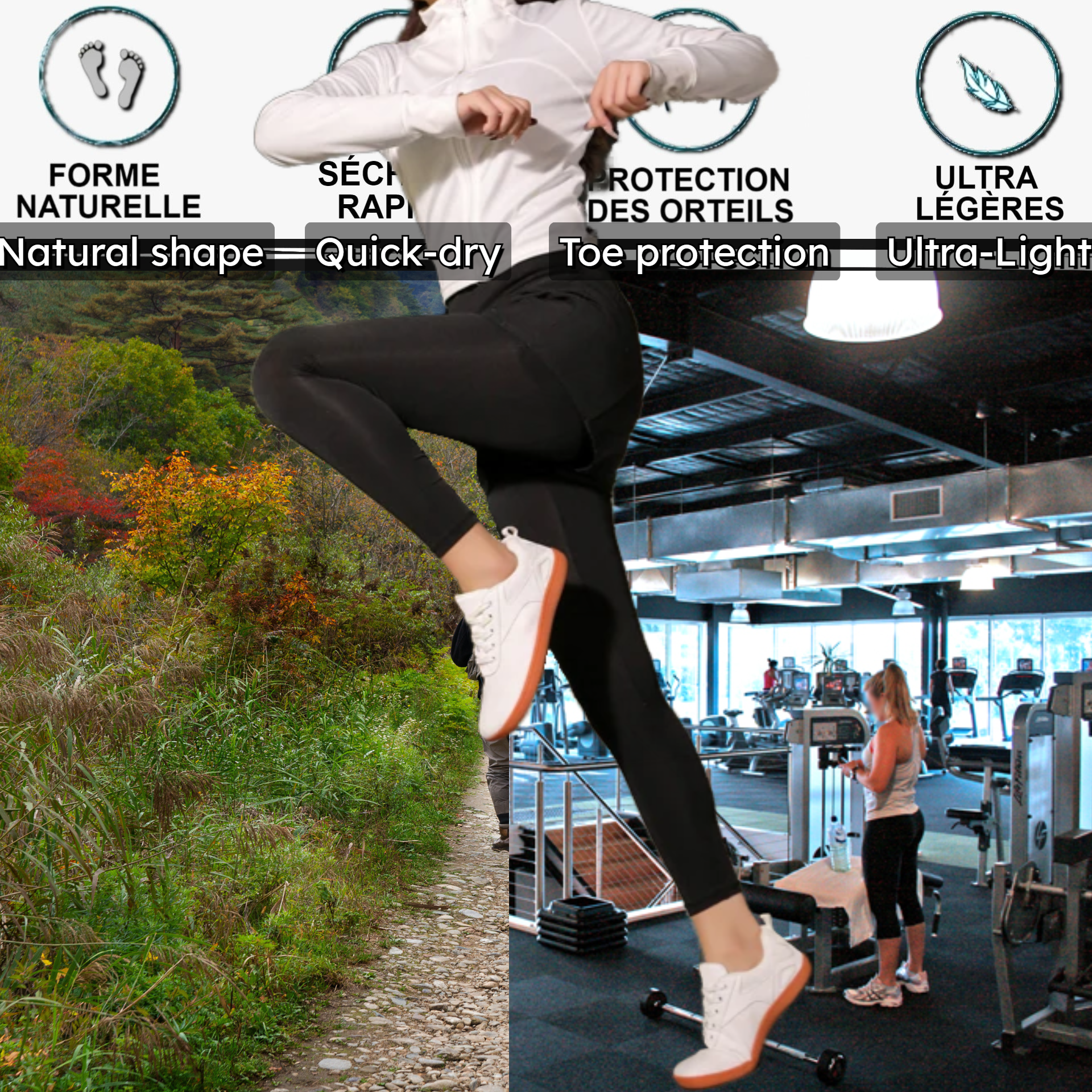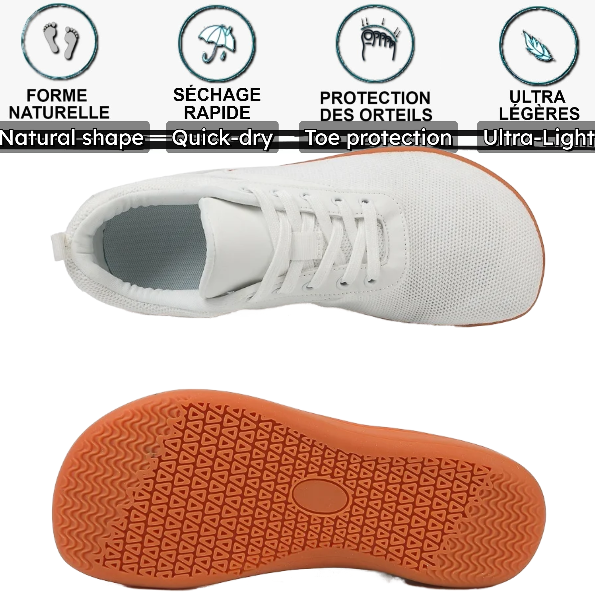 All-Terrain-Schuhe – Um Hunderten von Kilometern standzuhalten und gleichzeitig eine flexible und dünne Sohle (4 mm) zu behalten, werden die LightRunner® Symphony aus hochwertigen abriebfesten Polymeren hergestellt.