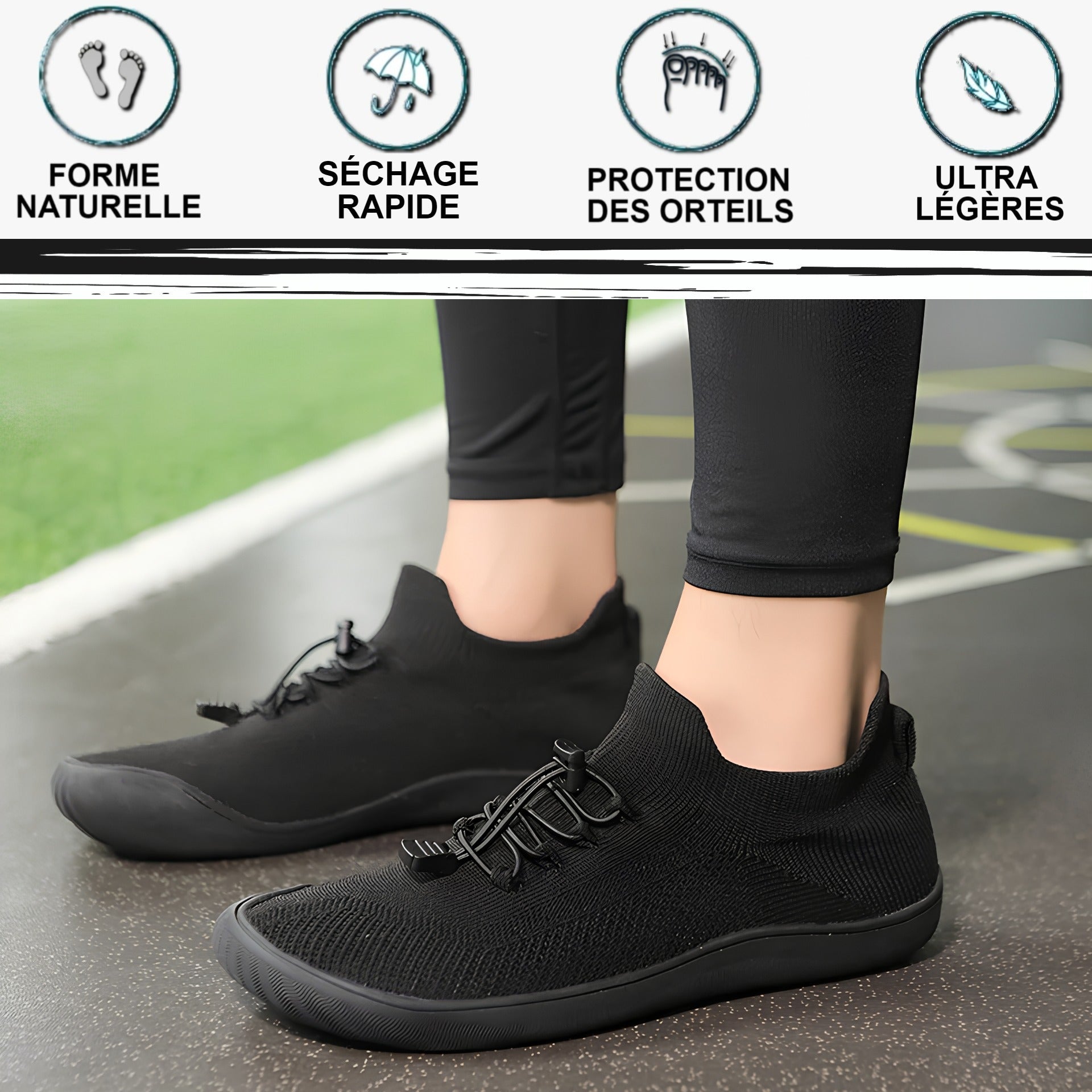 A little bit heavier than barefoot but otherwise very comfortable. They slip on by themselves, the soles are very flexible and we really appreciate the contact with the ground. A big advantage for beginners in "barefoot running" they forgive the heel-first contact much more than other models intended for practitioners more accustomed to this style of running. In summary, I think that this is the ideal model for those who want to try minimalist running without spending too many Euros... "